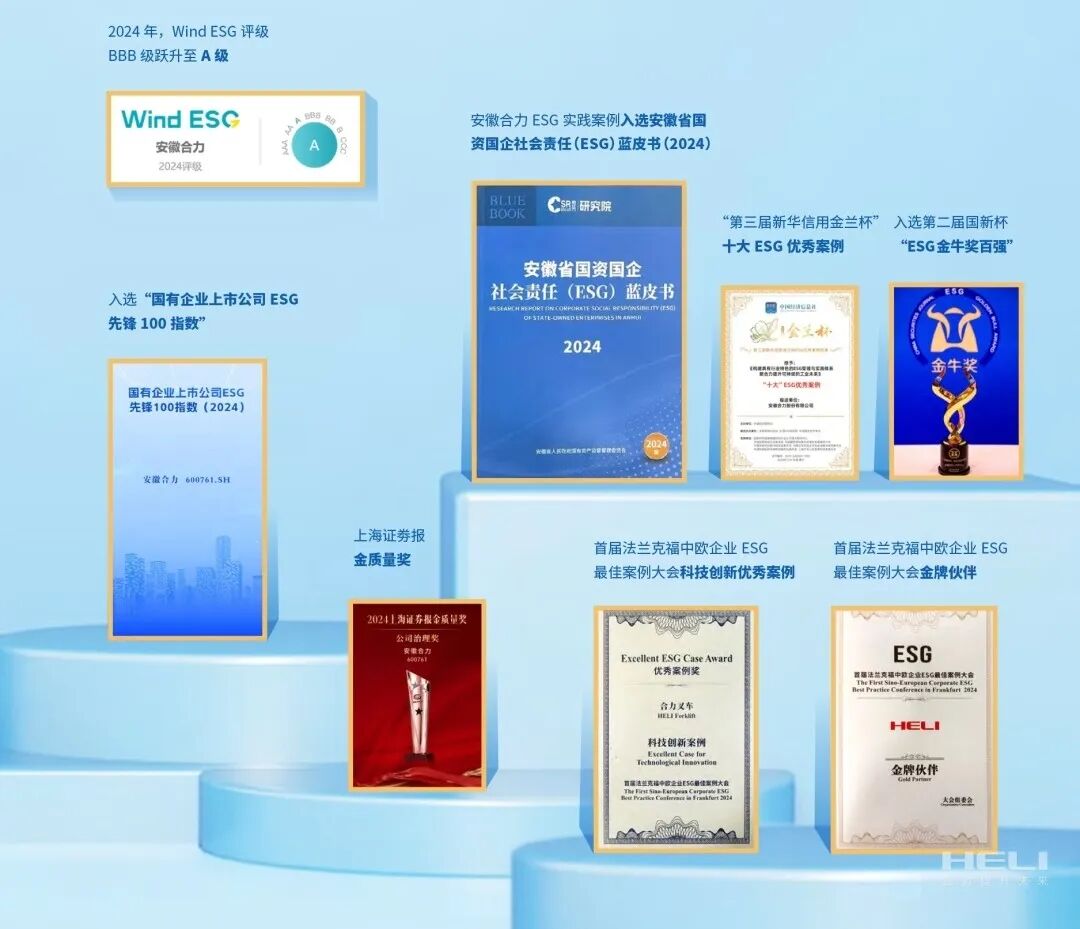 “十四五”期间,公司深入实施国企改革深化提升行动,全力推进企业治理体系和治理能力现代化,合力宇锋成功入选国务院国资委“科改示范企业”,公司成为具有“双科改”资质的省属企业之一,被列为国务院国资委确定的安徽省唯一一家国企改革基层联系点。深入开展对标世界一流价值创造行动和专业领军示范企业创建工作,全面建设“产品卓越、品牌卓著、创新领先、治理现代”的世界一流企业,清单按时完成率均为100%,入选国务院国资委“创建世界一流专业领军示范企业”,创建方案获全国“A+”最高等次。积极响应联合国可持续发展目标,于中国同行业率先发布可持续发展BOOST战略,构建具有行业特色的ESG战略管理与实践体系,通过ISO37001反贿赂管理体系认证、CDP和EcoVadis国际资本评级,接续入选第十八届中国上市公司价值评选“双百强”,上榜“国有企业上市公司ESG·先锋100指数(2024)”,“安徽合力”荣获安徽上市公司高质量发展贡献奖优秀等次。此外,公司持续深化“一改两为”,创新“一体三维四融合”大监督体系,强化全面风险管理,加强合规文化建设,不断以高效能治理推动公司稳健发展。